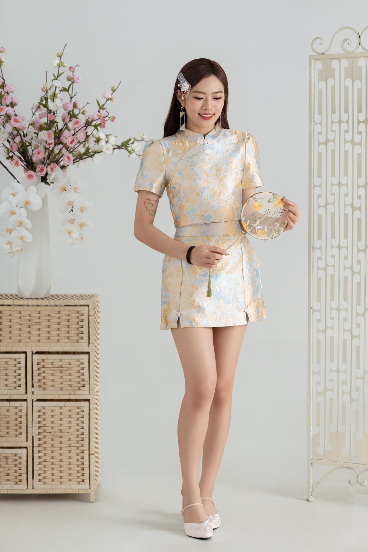C.N.Y CLOTHING东方诗意旗袍套装 (上衣+半裙) Full Lining (8307)