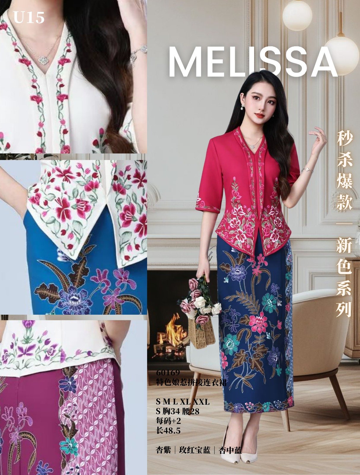 Dress特色娘惹拼接连身裙 (ME60169)