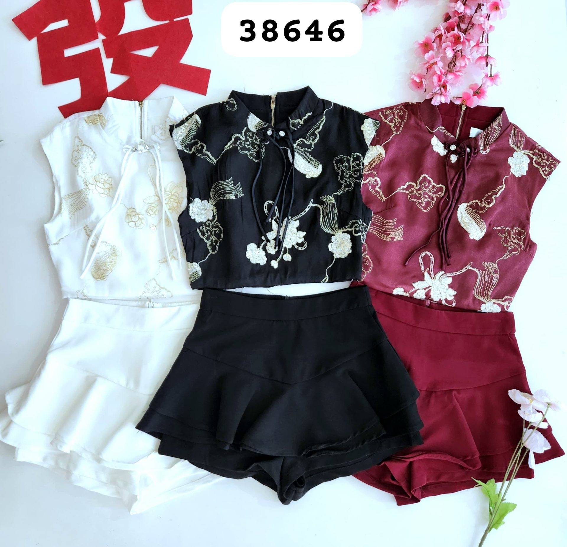 C.N.Y CLOTHING兰芷轩旗袍套装 (上衣+半裙) (7157) (原价Rm149) G/S