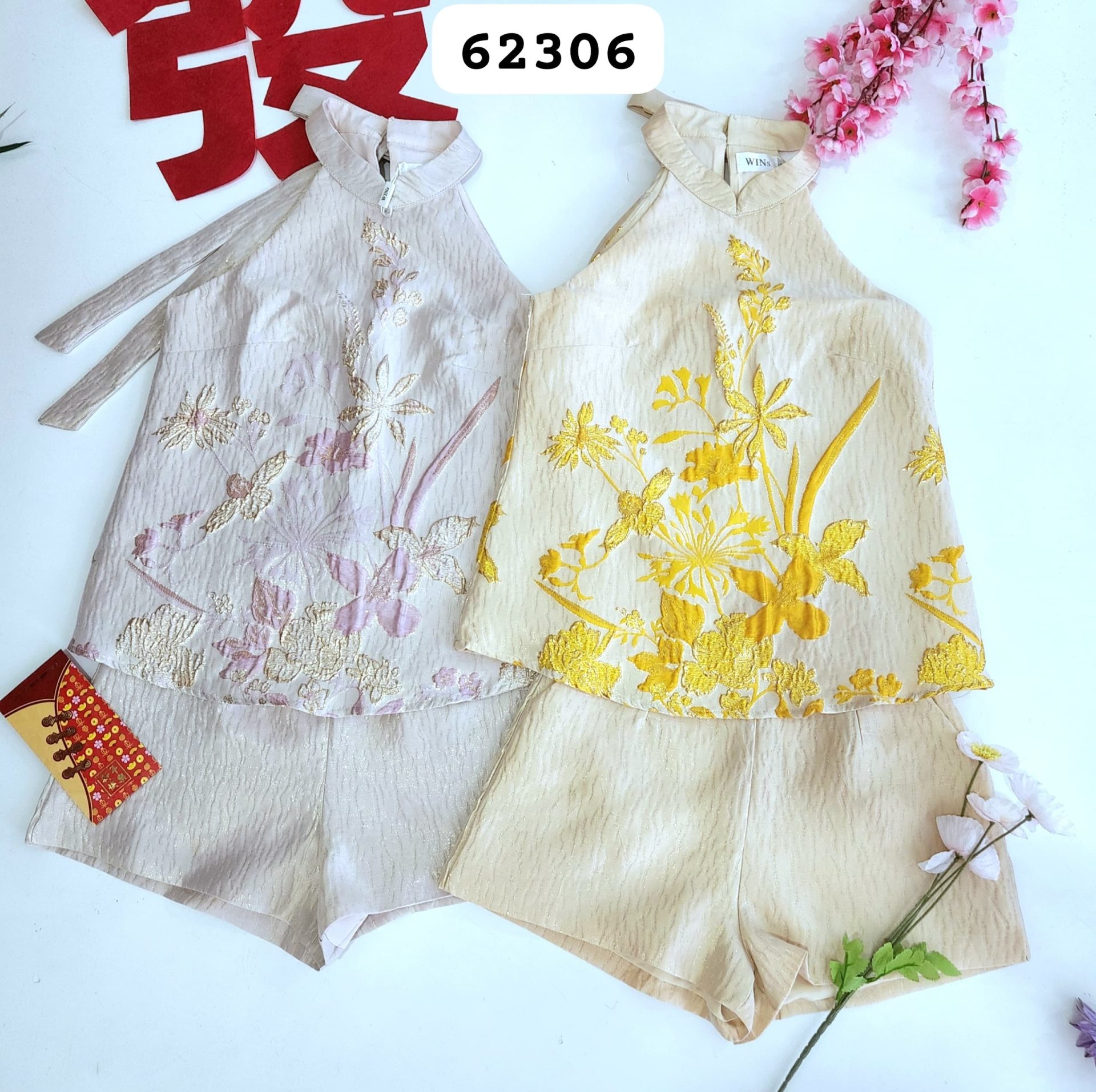 C.N.Y CLOTHINGWins高品 cut in 烫金旗袍套装 (上衣+裤子) (62306)