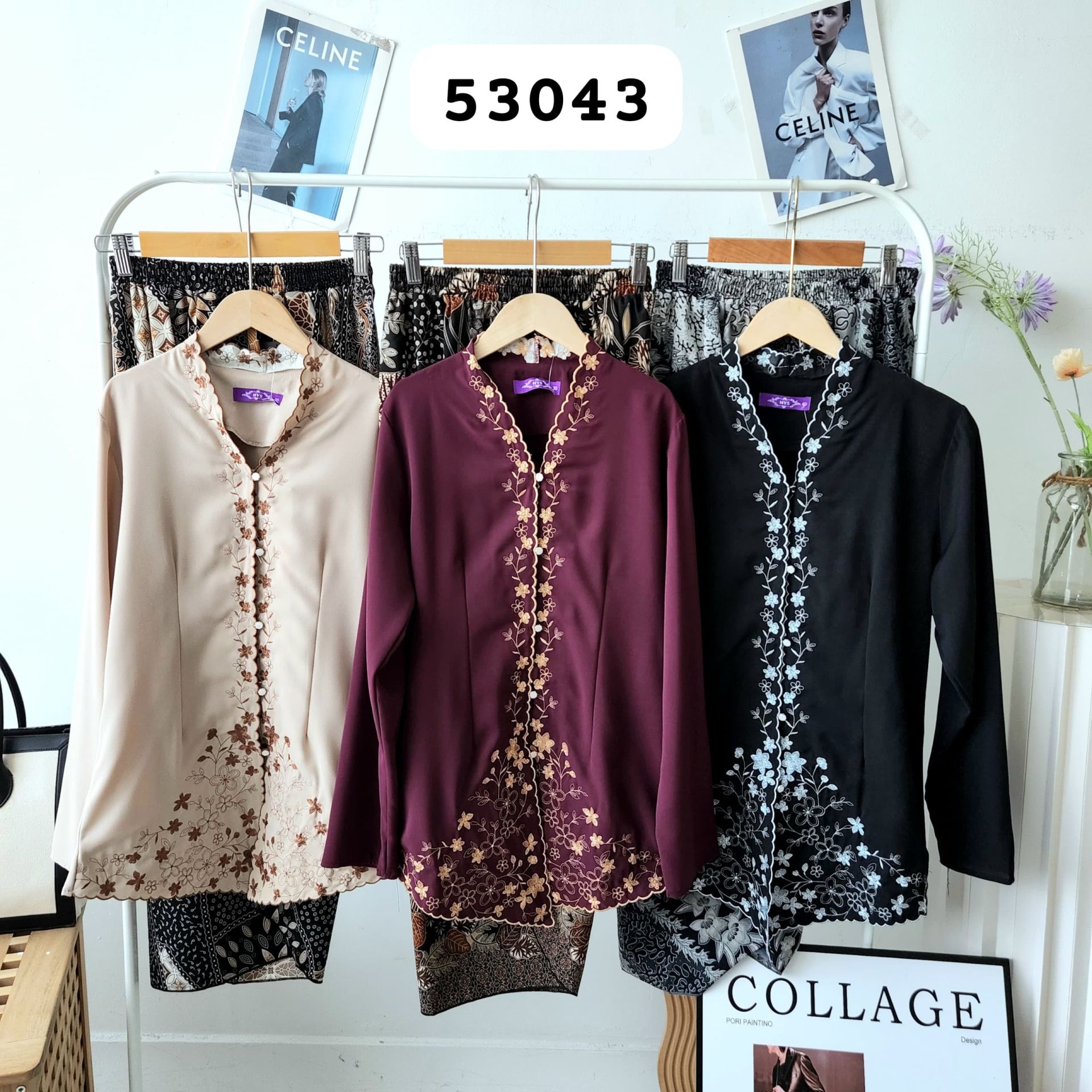 Batik /Kurung/Kebaya/SetPremium Kebaya Set (Kebaya Sulam Top+Pario Skirt) (53047) C44
