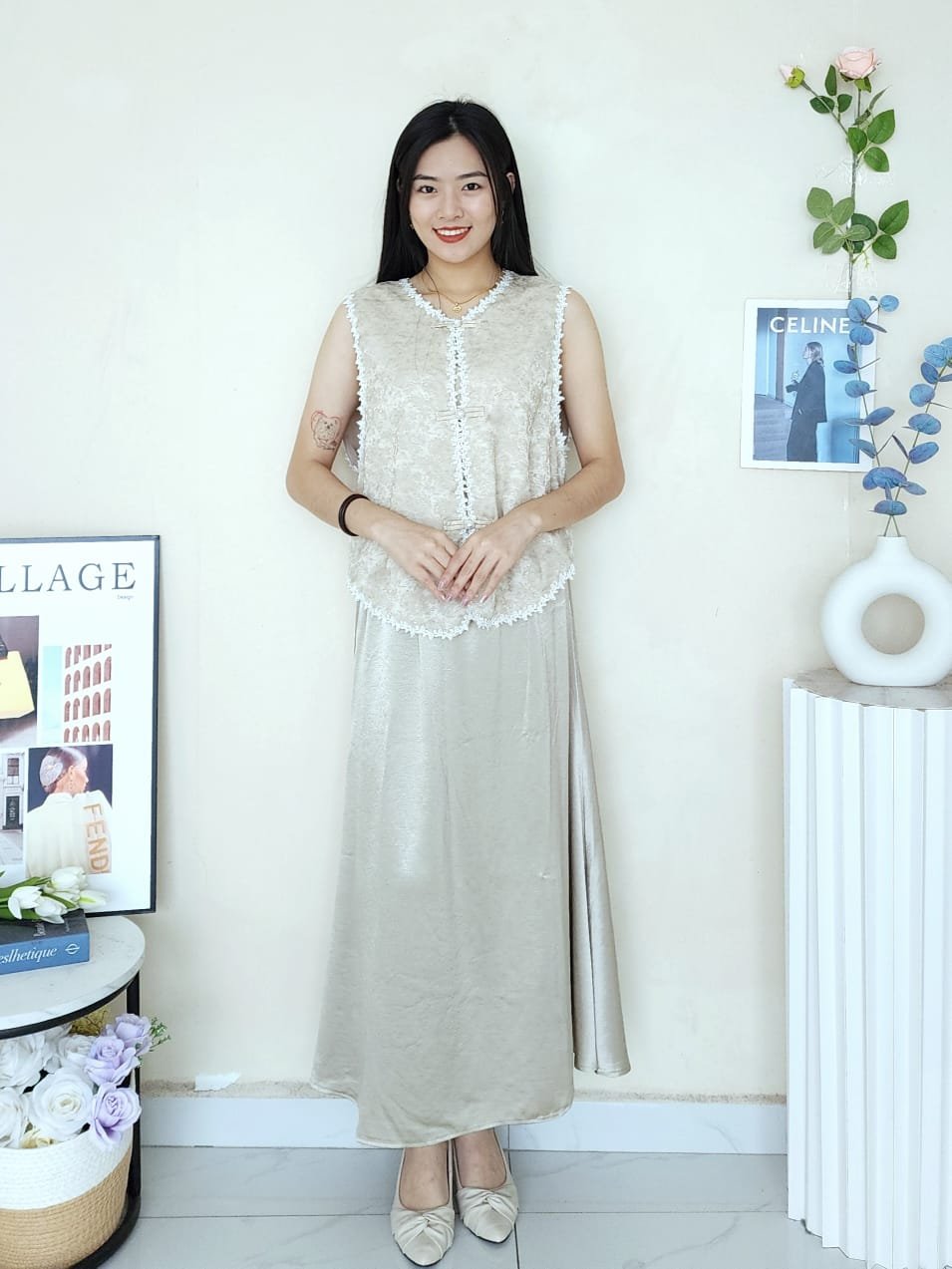Set Wear新中式宋锦马甲+satin半裙 (full lining) (6821)