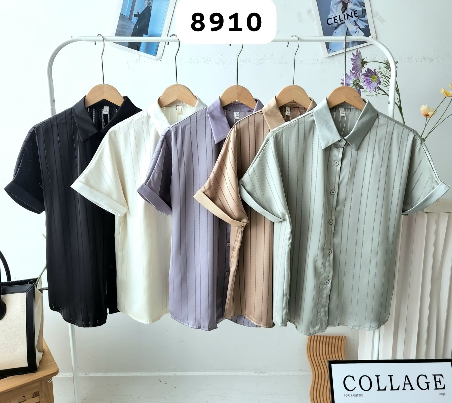高品竖条纹设计satin衬衫 (8910)