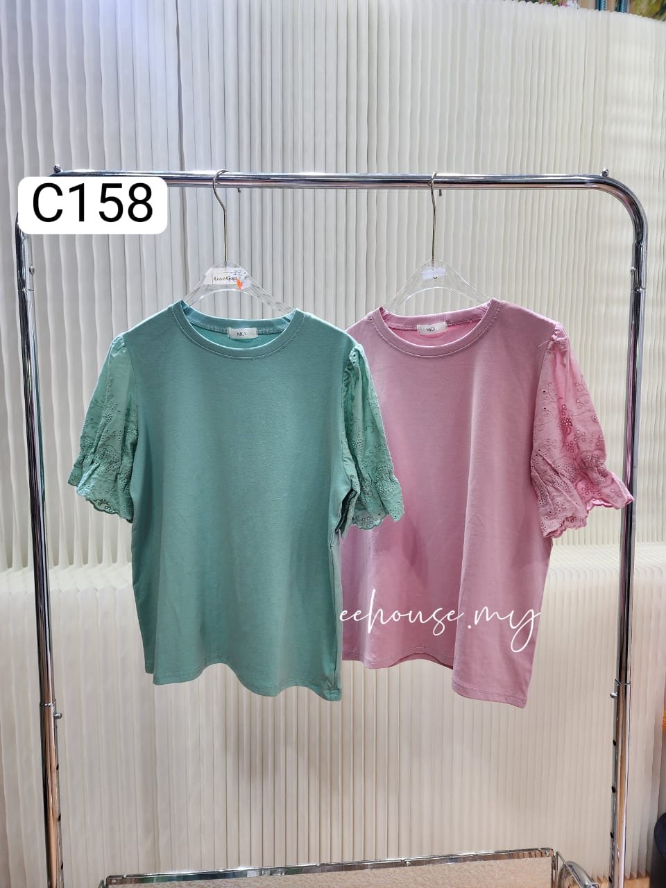 泰国代购2025PRE高品桐花袖拼接時裝上衣 (C158)
