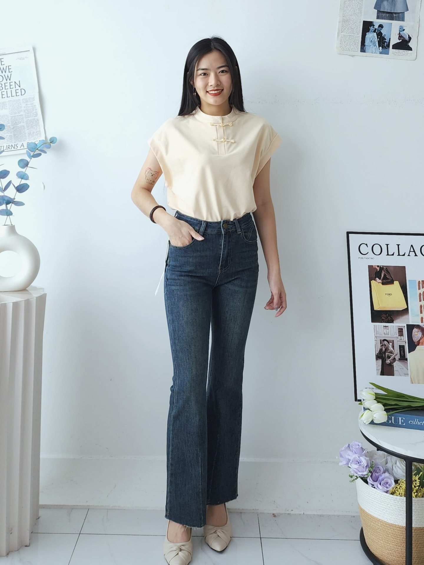 Bottom高级小香Denim Pant (6639)