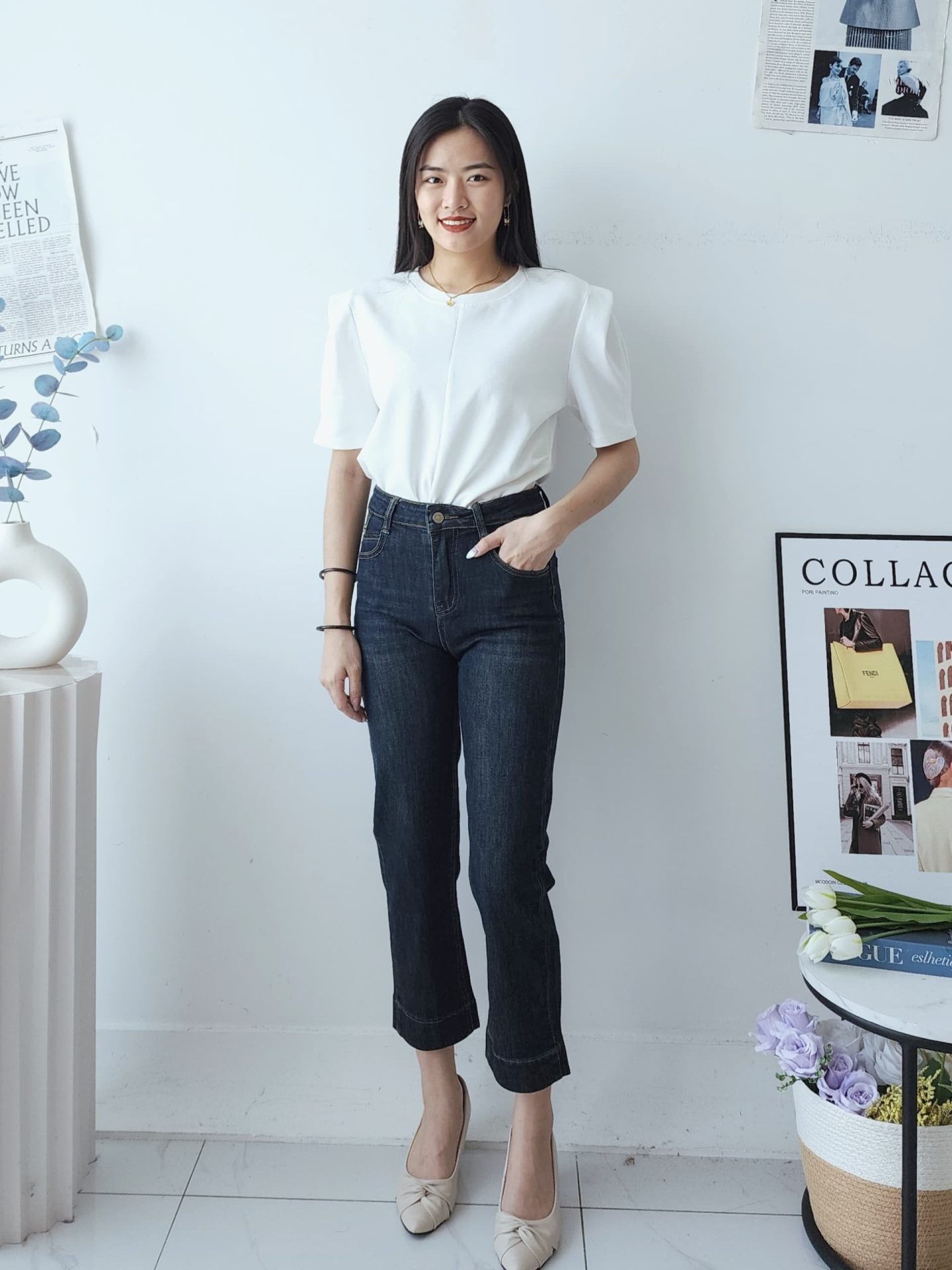 BottomPremium Denim 阔腿九分裤 (2195)