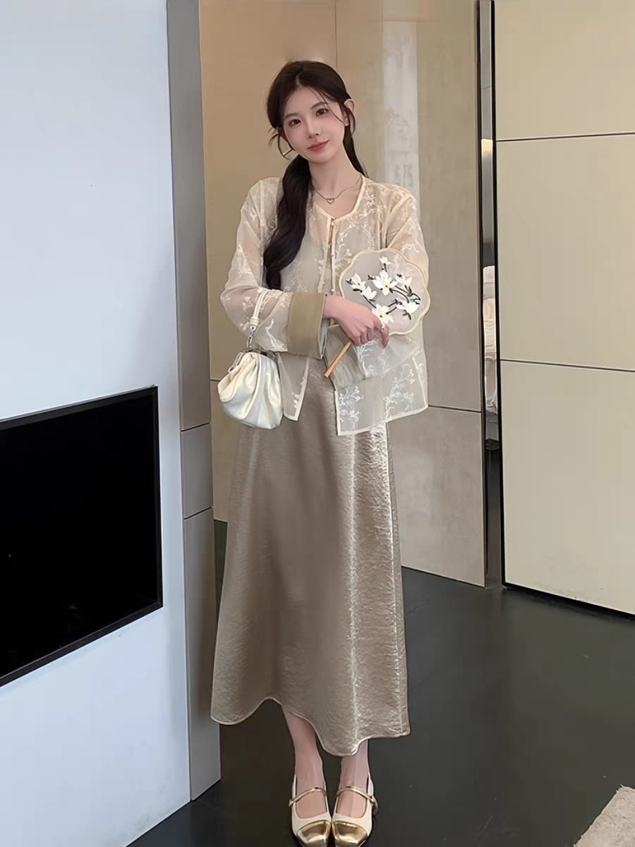 东方诗意旗袍套装 (上衣+半裙) Full Lining (8307)