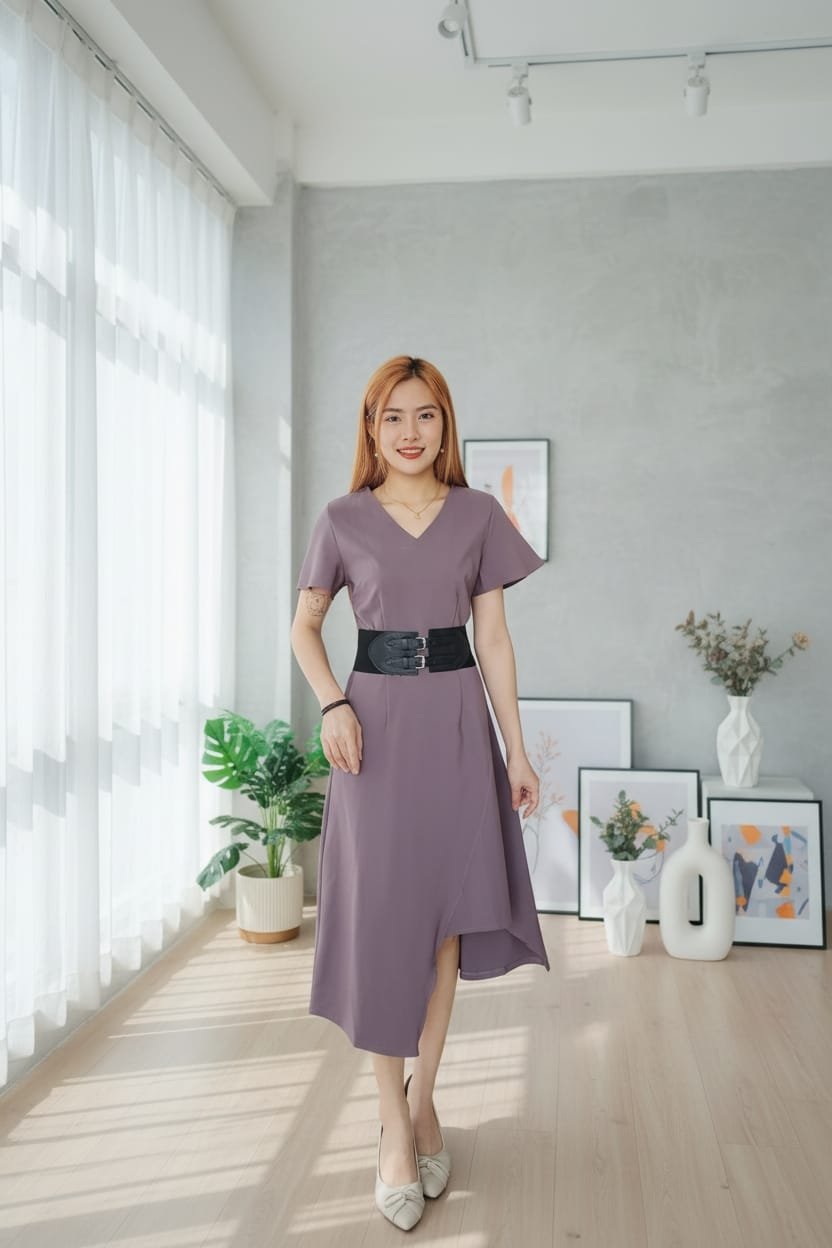 Dress高品V领不规则设计连身裙 (C5619)