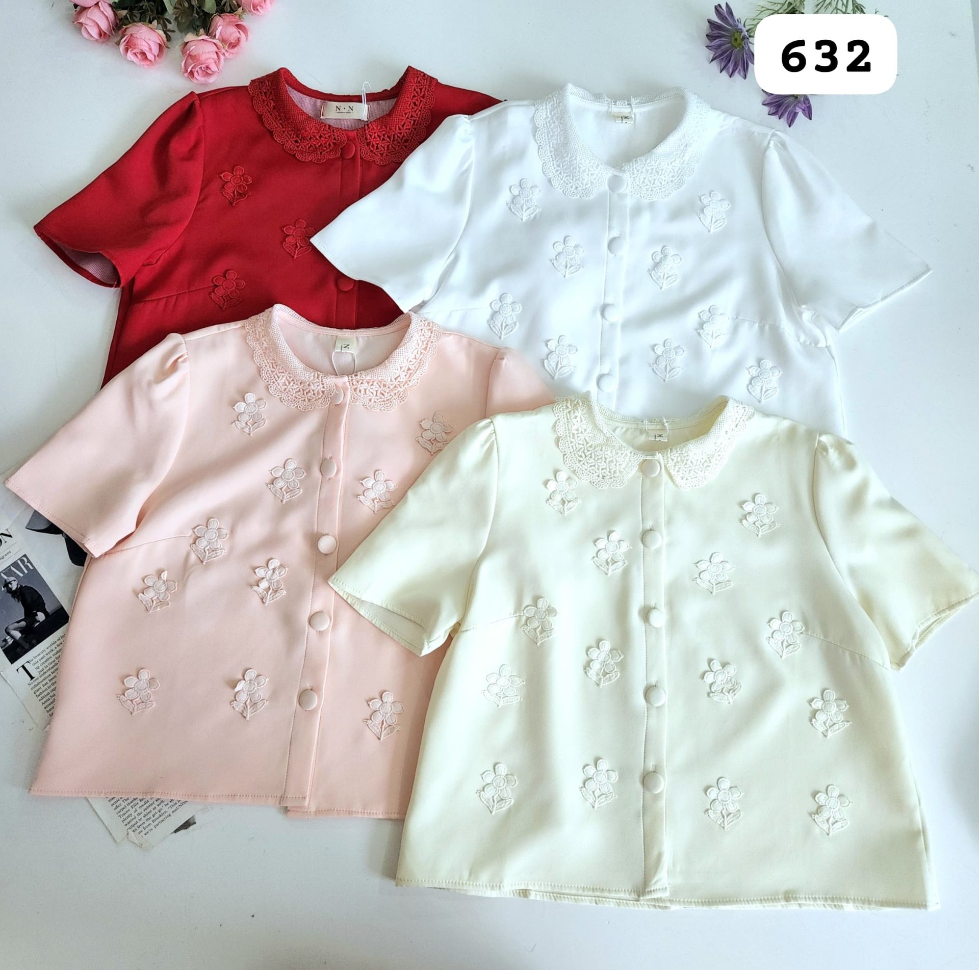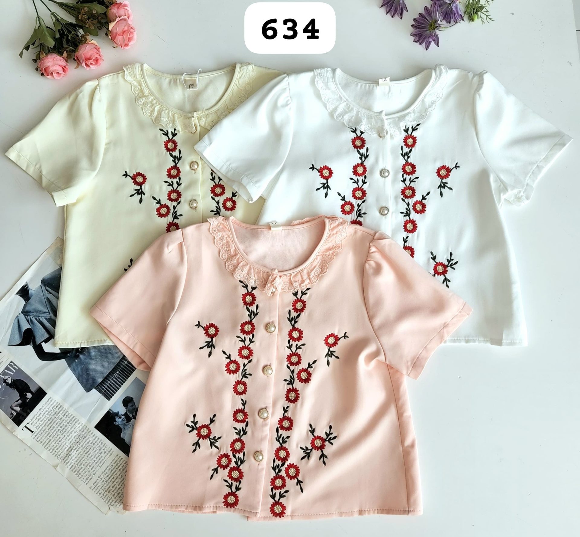 TopKorean Embroidery 刺绣花上衣 (634)