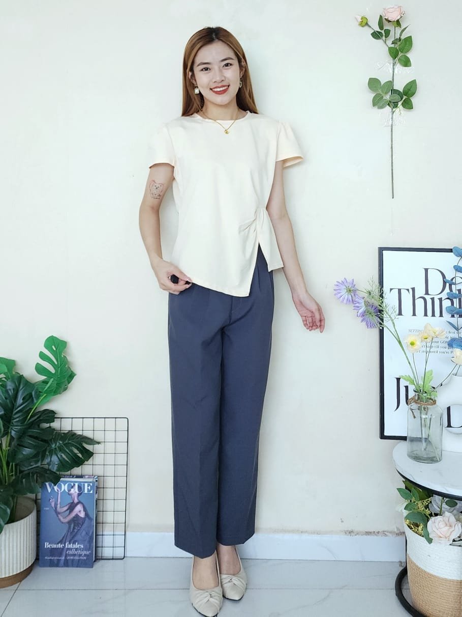 Top韩版V领收腰设计时装上衣 (4419)