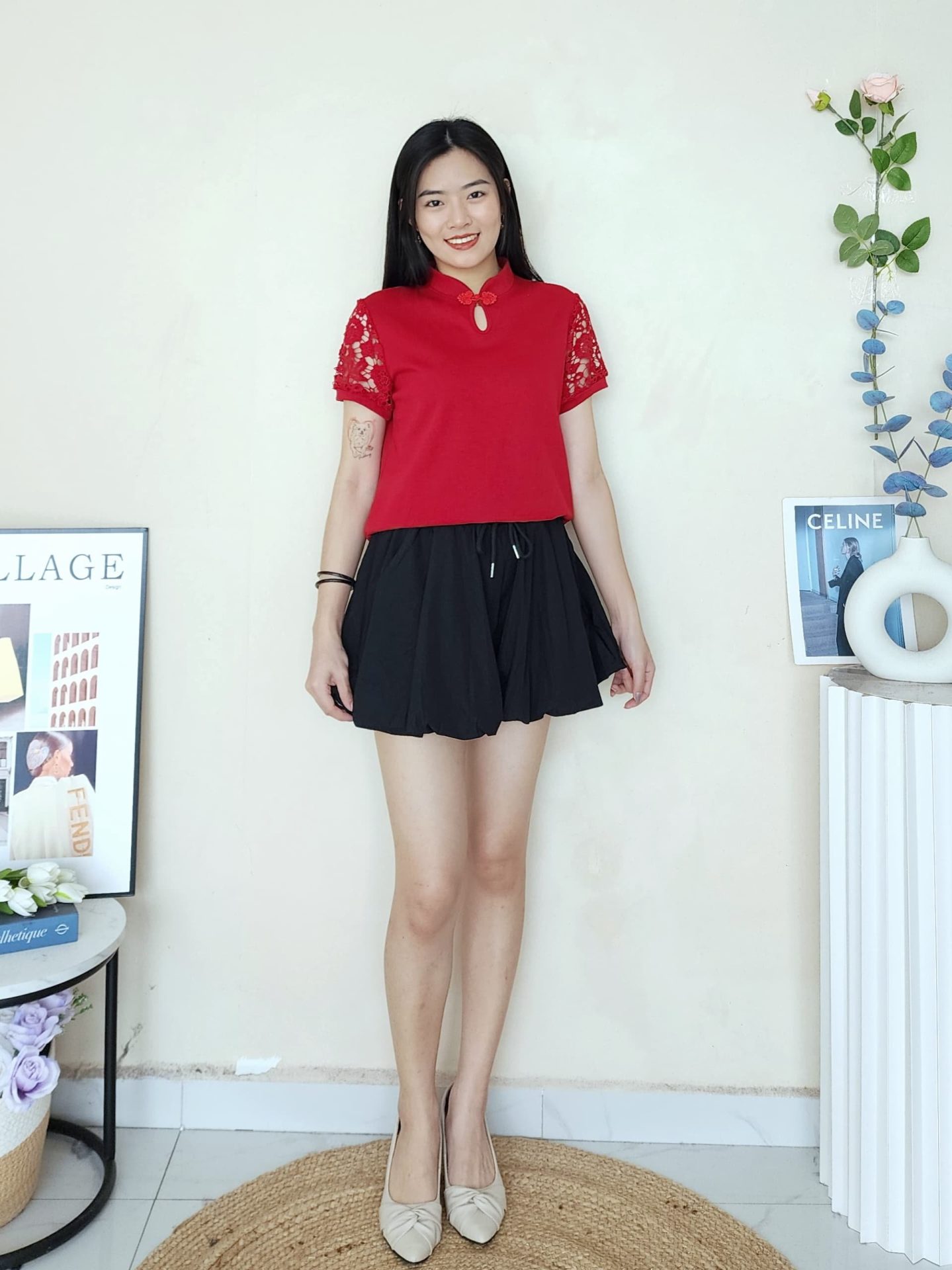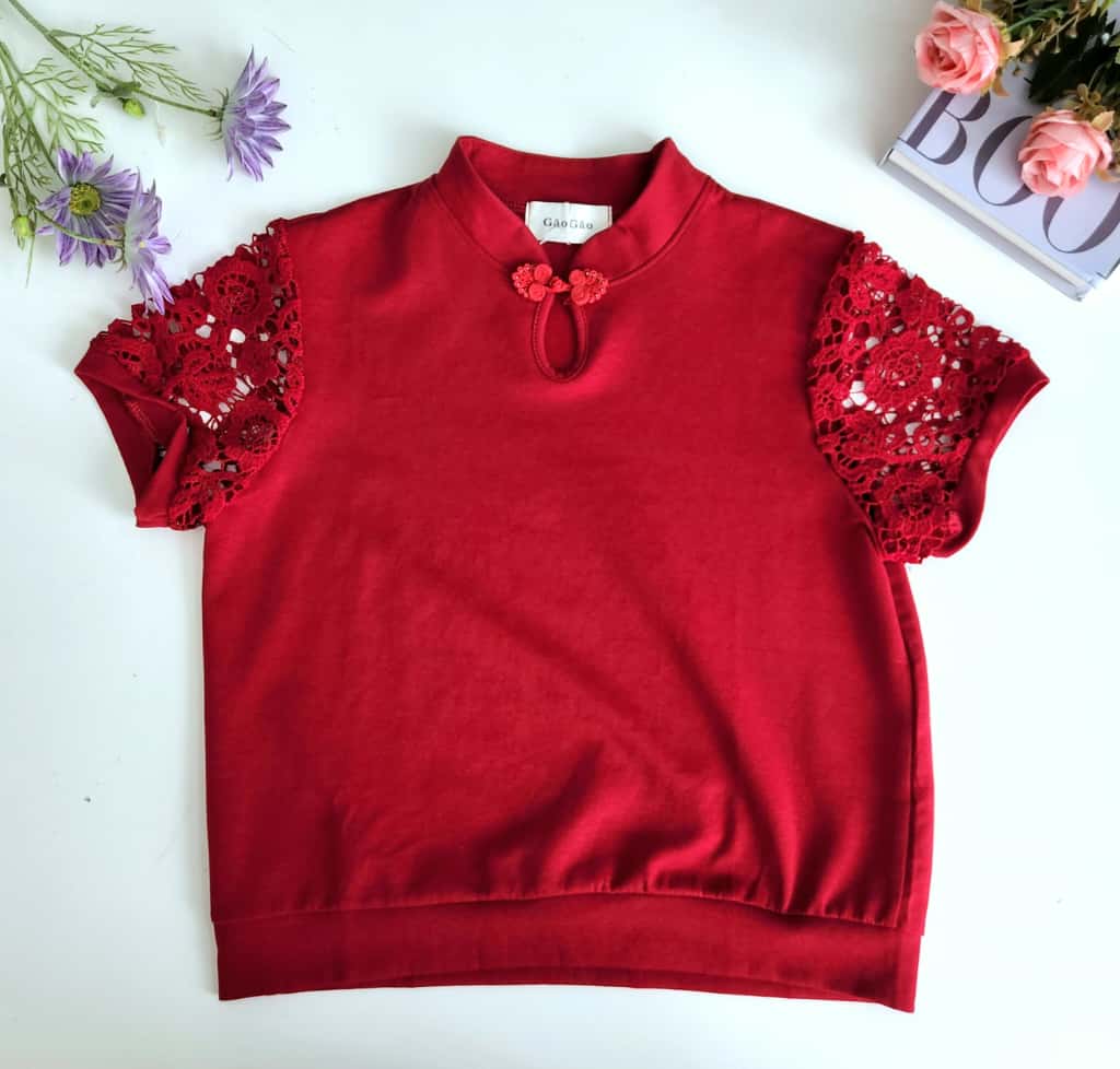 Top水溶钩花袖拼接新中式时装上衣 (5262)