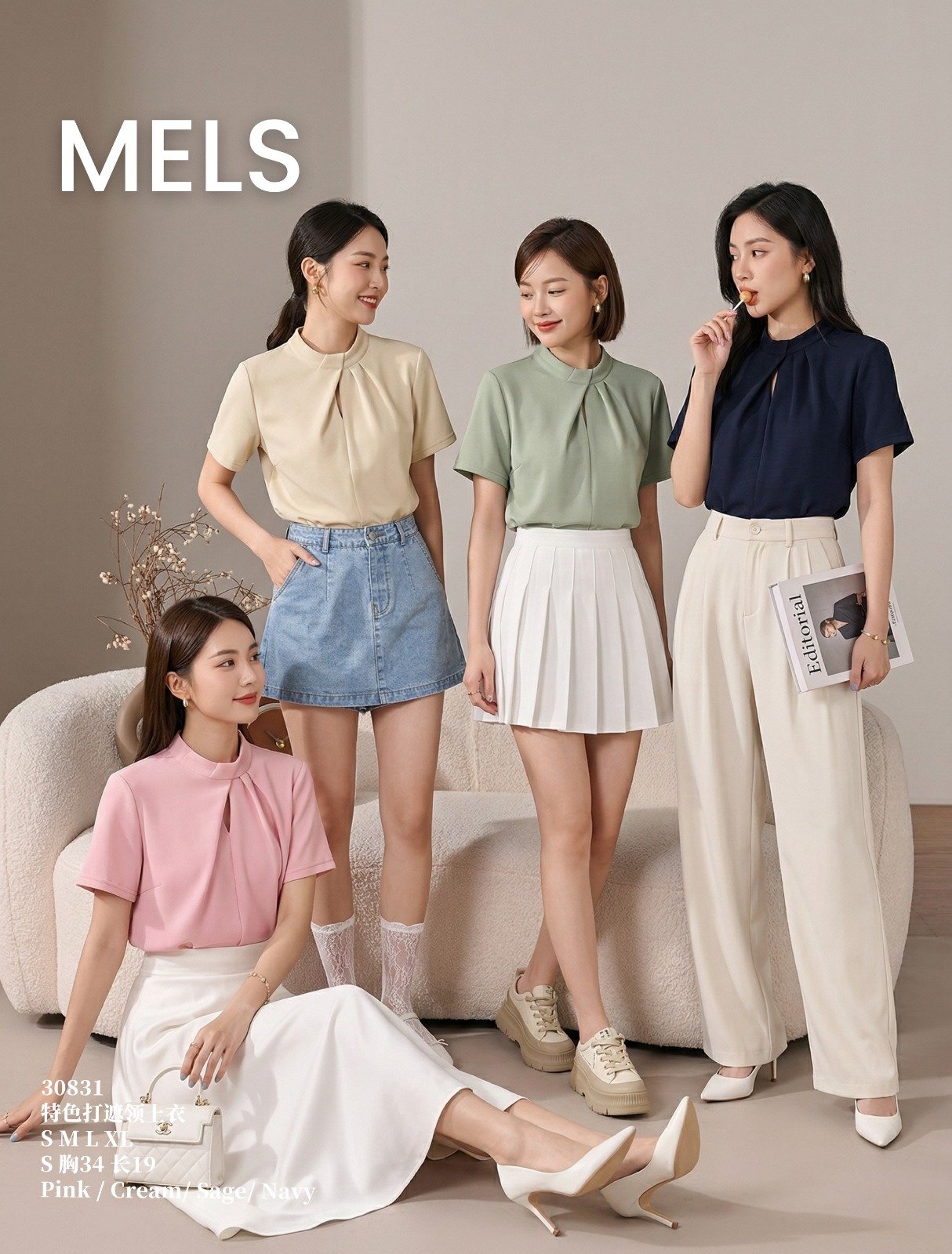 Top特色打遮领上衣 (ME30831)