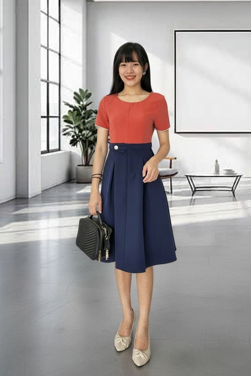 气质韩版拼色西装连身裙 (32380) E