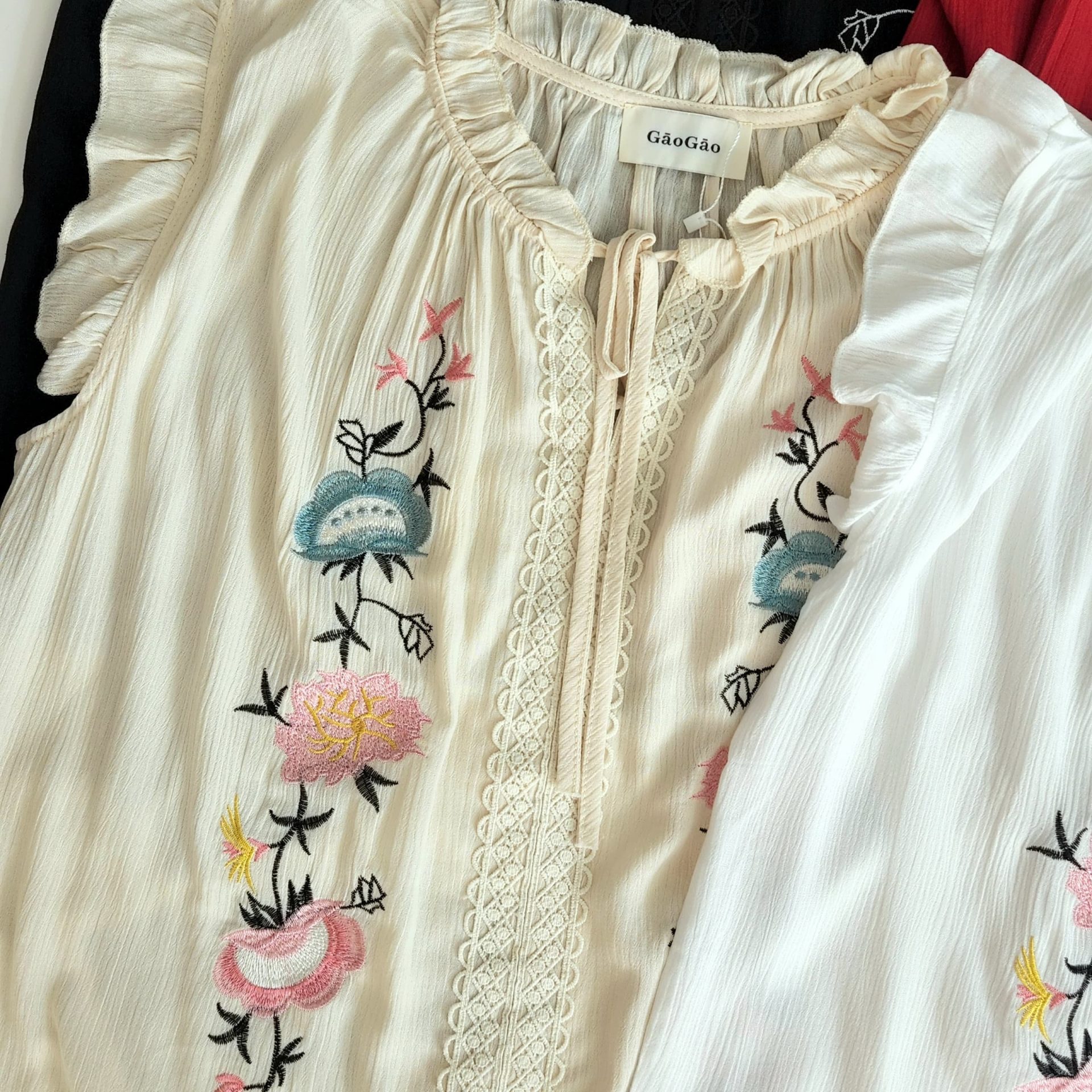Black, cream, Red, White