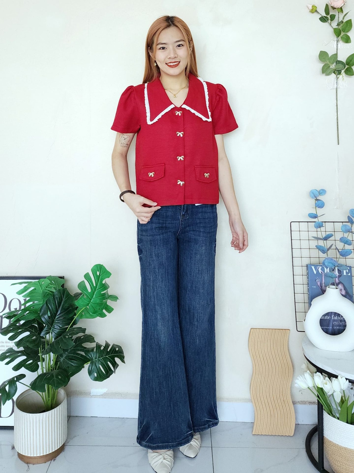 cream, Red, White